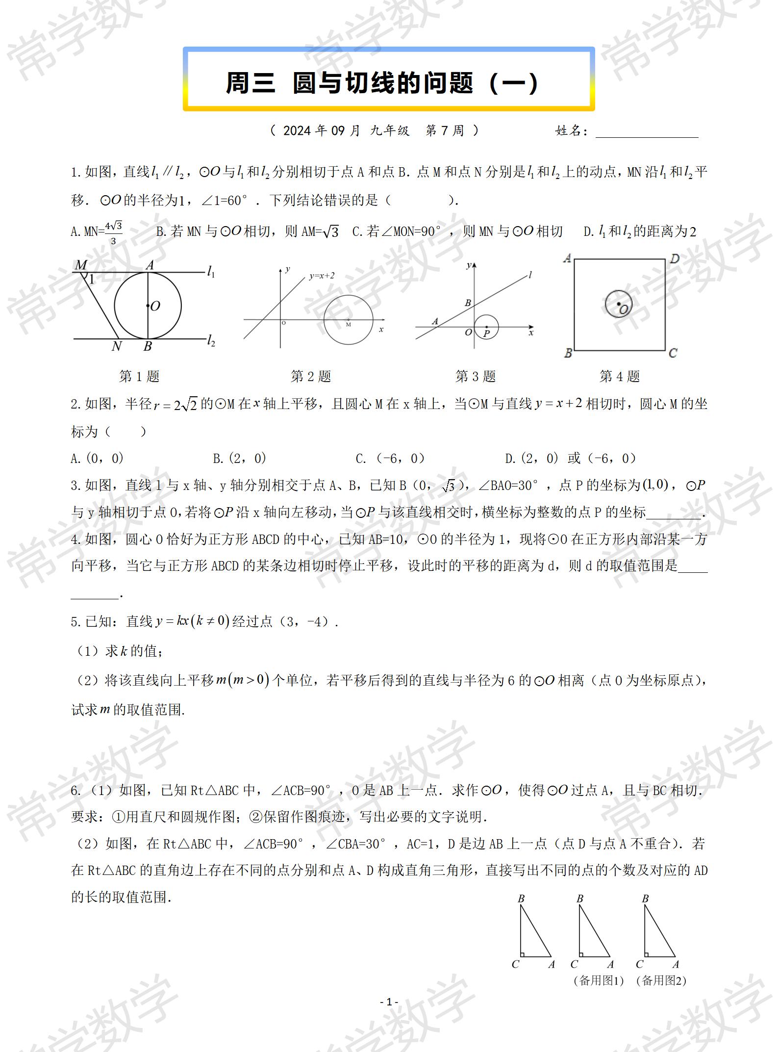 本练习主要考察:动圆的切线的问题以及动直线与圆切线的问题。